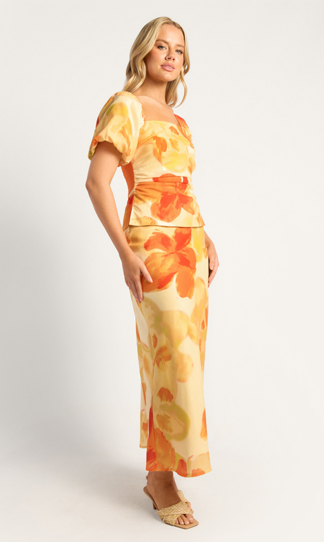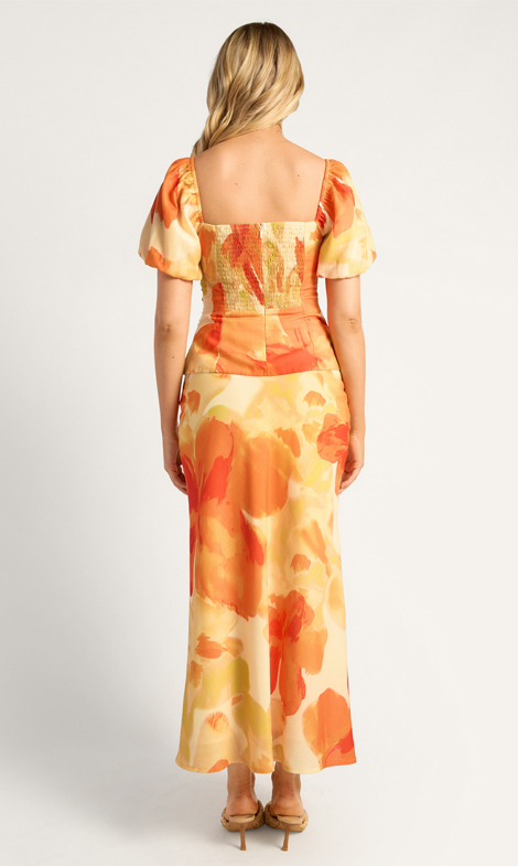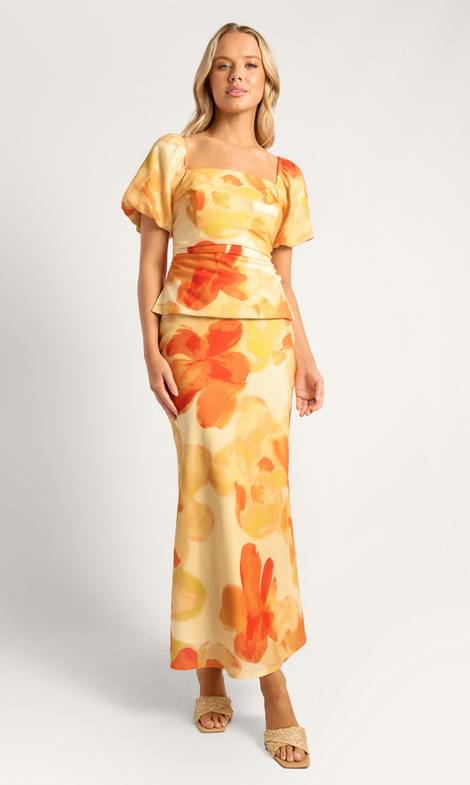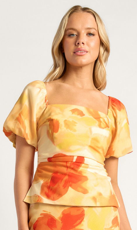 - Short bubble sleeves with elastic at shoulder and cuffs